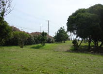 三角地を過ぎ、稲村ガ崎の手前右側に市営プールがあり、その前の広場が「プール前公園」と呼ばれています。木陰で休息すると、心地よい潮風と遠く波の音が聞こえてくる気持ち良い休憩場所です。