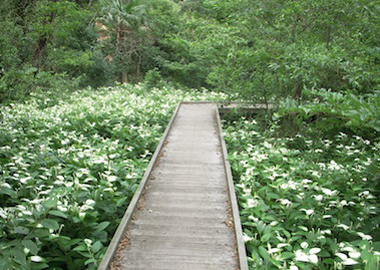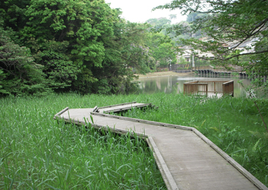 池の展望を楽しみながら湿地の中を散策できる場所です。
