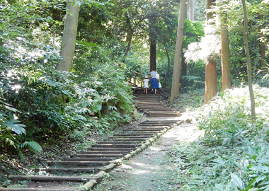 鎌倉山との接続口。階段の両脇にはツツジとアジサイが彩ります。