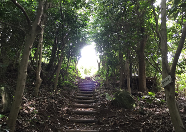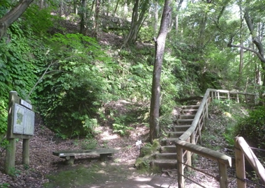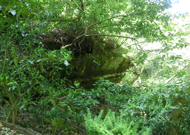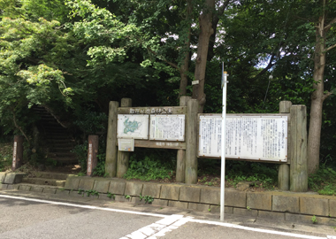 石塔や石段などに使われた「かまくら石」を切出した跡。この辺りの石は硬く質がよかったそうです。