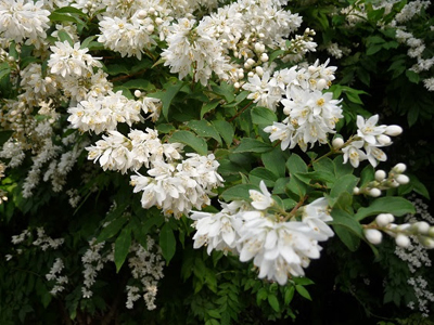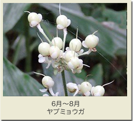 6月 ハンゲショウ、ケイワタバコ、アジサイ、ウツギ、ヤブミョウガ